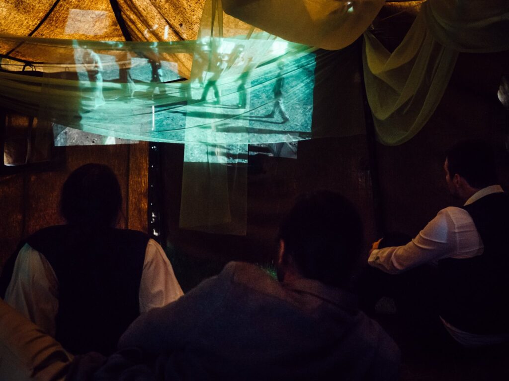 Dalším zajímavým prvkem jsou filmové projekce. Ty se používají ve chvílích, kdy se některé postavy ocitnou mimo hlavní dění. Krátké filmové sekvence naznačují události, které se odehrávají někde jinde – například během války nebo v izolaci kláštera. Projekce jsou obvykle jednoduché a stylizované, často černobílé, což podporuje pocit magického realismu.